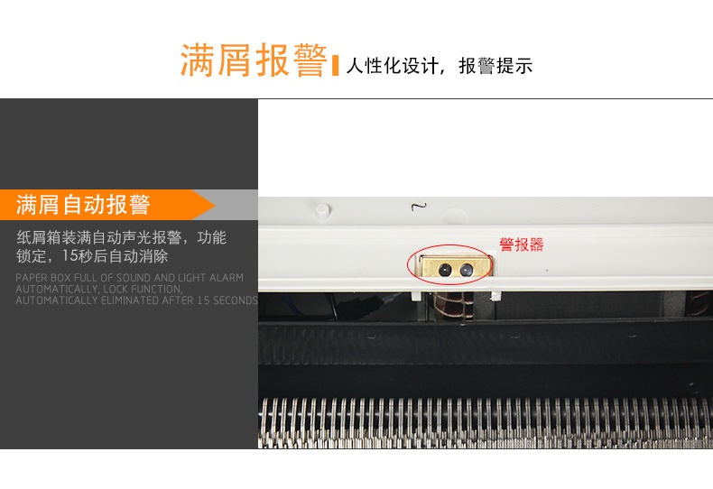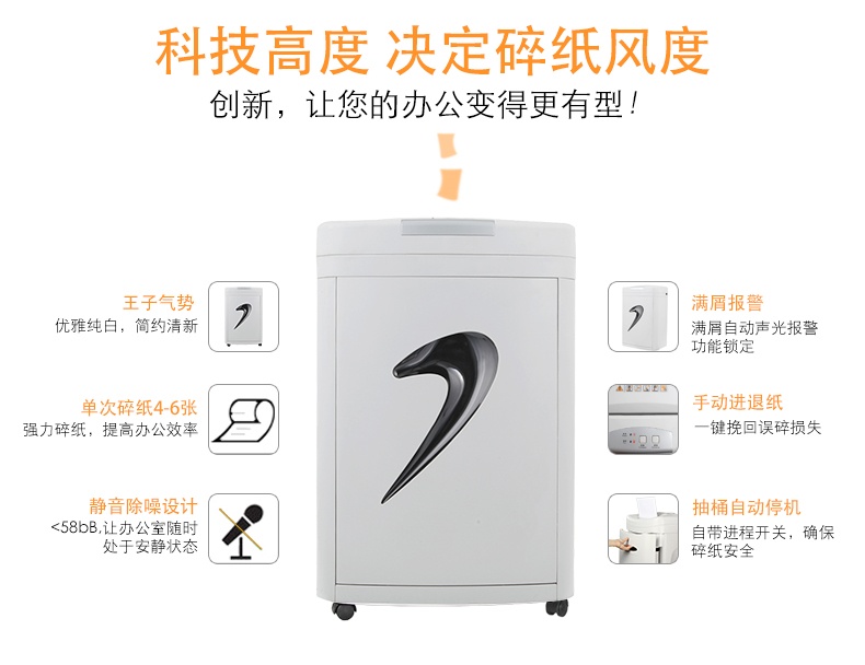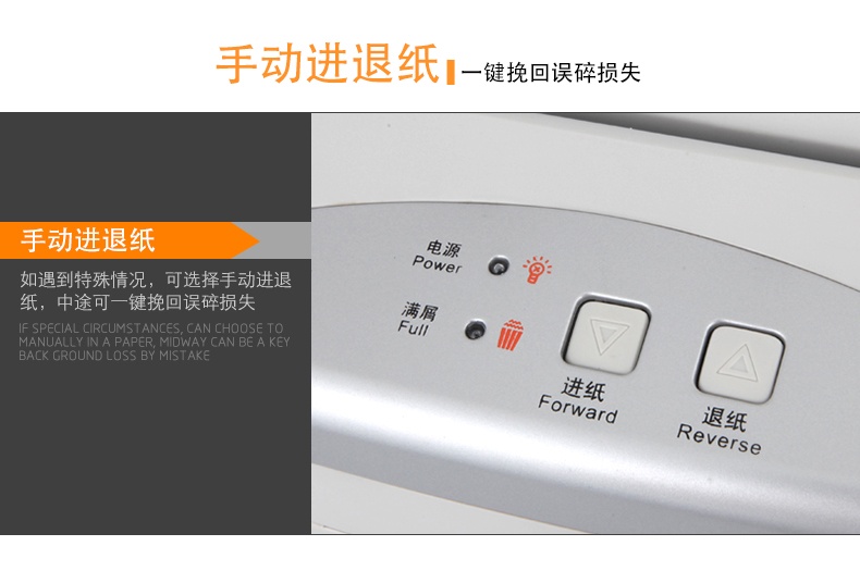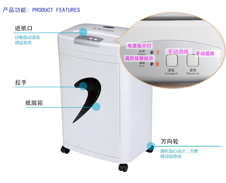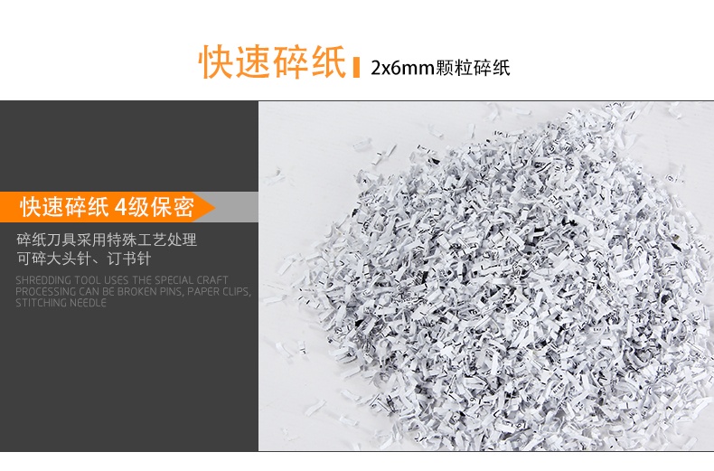 碎紙方式:粒狀碎紙效果:2x6mm碎紙能力:4-6張/次碎紙速度:3.5碎紙寬度:220mm
