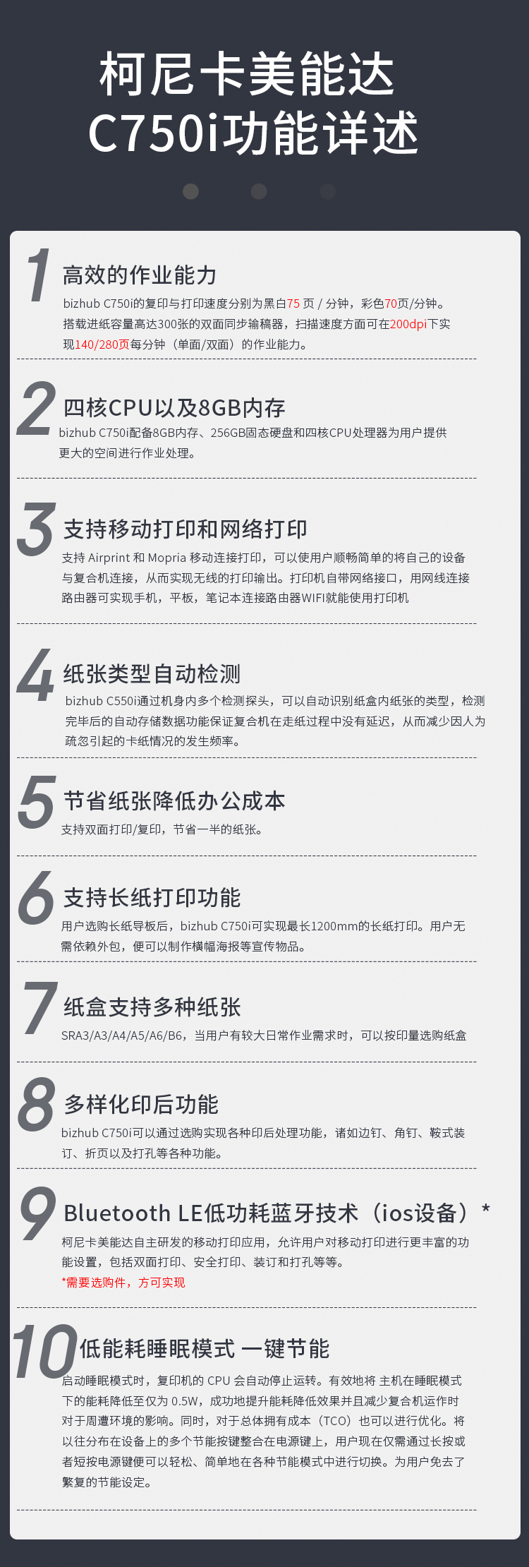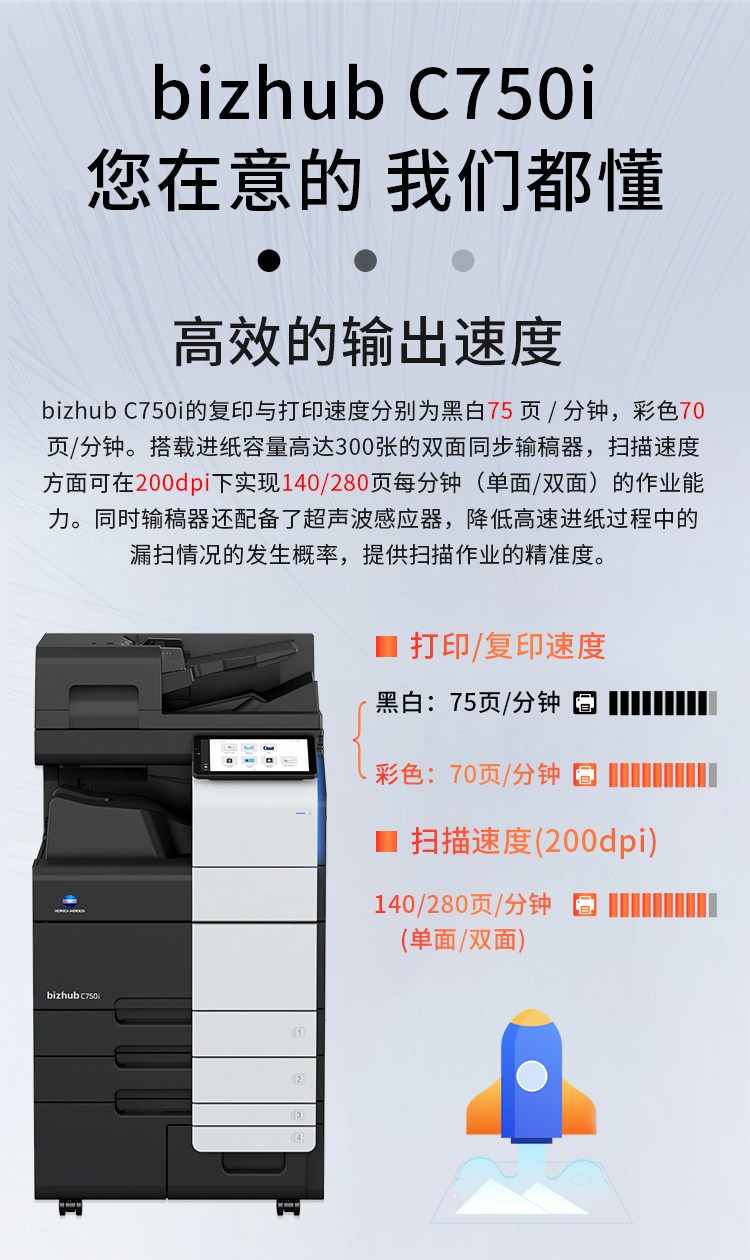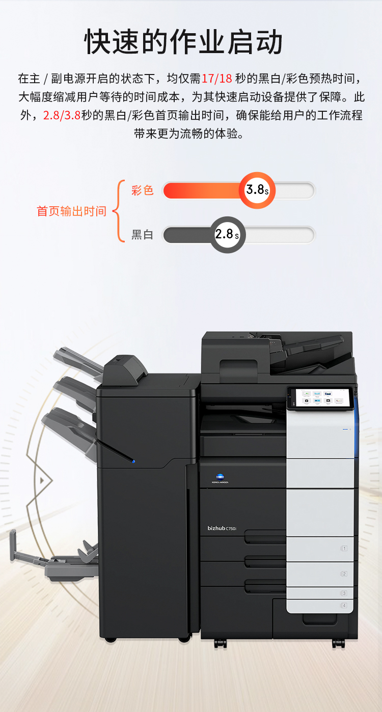 3、打印速度:75/70 頁(yè)/分鐘(黑白/彩色)